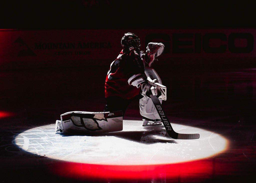 Custom design of Brian's Optik 2 pads for Antti Raanta of the NHL Arizona Coyotes worn during the 2019-2020 season